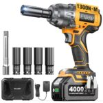 【2025新型】電動インパクトレンチ タイヤ交換 インパクト強力 1300N.m BLモーター採用 1/2″トルクレンチ充電式コードレス電動レンチ4.0Ahバッテリー一個付き無段変速 ナットの締め付けボルトの緩みタイヤ交換ホイール交換自動停止モード正逆切替LEDライト付きソケット4本 |