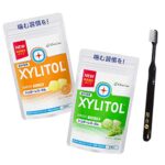 オーラルケア [歯科専用] [味長続きタイプ] ロッテ キシリトールガム ラミチャック ×2個 (オレンジ・マスカット) + [日本製] 艶白 (つやはく) ツイン (二段植毛) 歯ブラシ ×1本 |
