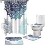4 ピースセットの彫刻されたala man man flowerala羅の花咲く抽象印刷シャワーカーテン浴槽装飾カーペット防水バスルームカーテン便座クッションセット 180 × 180 センチメートル |