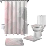 4 ピースセットのピンクグレーグラデーション三角形耐久性のある防水シャワーカーテンセットバスルームカーペットカーペット便座カバークッションフロアマット 180 × 180 センチメートル |