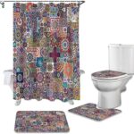 4 ピースセットのカラフルなパターンテクスチャトーテム耐久性のある防水シャワーカーテンセットバスルームカーペットカーペット便座カバークッションフロアマット 180 × 180 センチメートル |