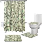 4 ピースセットのコイン印刷シャワーカーテン防水バスルームカーテン便座クッションノンスリップカーペットセットバスタブ装飾 180 × 180 センチメートル |