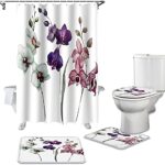 4 ピースセットのカラフルな蘭植物アート耐久性のある防水シャワーカーテンセットバスルームカーペットカーペット便座カバークッションフロアマット 180 × 180 センチメートル |