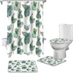 4 ピースセットの緑の葉植物印刷シャワーカーテンバスタブ装飾カーペット防水バスルームカーテントイレカバークッションセット 180 × 180 センチメートル |