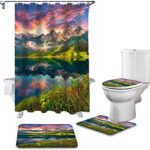 4 ピースセットの美しい自然風景印刷シャワーカーテンバスタブ装飾カーペット防水バスルームカーテン便座クッションセット 180 × 180 センチメートル |