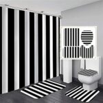 美しいストライププリントシャワーカーテン4ピースカーペットカバートイレカバーバスルームマットクッションカバーフック付きバスルームカーテン180comx180cm |