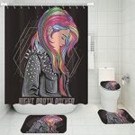 美しいアフリカの女性のバスルームカーテンセット4個バスルームカーペットトイレクッション3Dプリントバスルームセット180comx180cm |