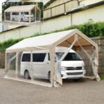 Kennkari ガレージテント カーポート 3×6m 車庫テント 透明 パイプ車庫 軽自動車用 大型 車 駐車 日よけ 防水 スチール製 両側ファスナー開閉式 頑丈 仮設倉庫 (ベージュ) |