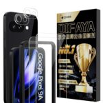 【DIFAYA】【ガイド枠付き】 対応 Google Pixel9a ガラスフィルム (2枚)+Pixel9a カメラフィルム(2枚)【旭硝子素材製 – 4枚入り 】【高透過率/全面保護/硬度9H/極薄0.28mm】Pixel9a フィルム 気泡防止 指紋防止 耐衝撃 撥水撥油 自動吸着 飛散防止