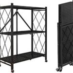AirZen 折りたたみラック キッチンラック スチールラック 幅70cm キャスター付き 移動便利 組立簡単 大容量 メタルラック 棚 オープンシェルフ 家電収納棚 食器棚 調味料ラック 電子レンジ ラック 防サビ加工(3段 幅70×奥行34×高さ87cm, ブラック)