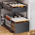 【新登場 & 組立不要!】シンク下 スライドラック シンク下収納 スライド引き出し収納ラック 2段 キッチン バス リビング対応 8ローラー 大容量 省スペース 隙間収納 高さ調整 カーボンスチール製 耐荷重 防錆 ホワイト/ブラック 大サイズ(40*28*37cm) |