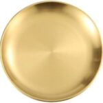 Riazdiw ステンレス丸トレー、食器、小物、カフェ、キッチン用品、家庭用、業務用、ステンレス、厚みあり、フルーツ、ケーキ、バーベキュープレート (マット仕上げ,14CM,ゴールデン) |
