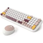 ワイヤレスキーボードとマウスのコンボ、MOWUX – モダンコンパクトレイアウト、カラフルなコンパクトキャンディマウスとレトロなラウンドキーボードセット、カバー付き、PC/ラップトップ/Windows/Mac用 – オフホワイト カラフル |
