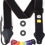 [LEKATO] ギターストラップ ベース ストラップ エレキギター ストラップ ピック 6枚 ロック 6cm幅 長さ調節可能 コンフォート素材 ファイン・エンブロイダリー ブラック/黒 |