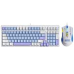 Qisan ゲーミングキーボードとマウスのコンボセット 有線メカニカルキーボード ブルー LED バックライト付きキーボード ブルースイッチ 100キー USレイアウト RGB 有線ゲーミングマウス 7200DPI PC Mac用マウス-(ホワイト/ブルー/パープルコンボ) |
