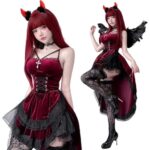 [KALAOK] 悪魔 デビル レディース 大人 衣装 黒 羽 可愛い コスチューム イベント 仮装 文化祭 パーティ red L |