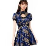 チャイナワンピース 大人用 (ネイビーブルー, M) |