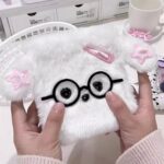 もこもこ ファー素材 バインダー|カード収納用 活页ファイル|透明リフィル10枚付き|コンパクトサイズ|コレクション整理・持ち運び便利(白耳いぬデザイン) |