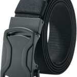 [LionVII] ベルト メンズ 伸縮 – オートロック式 ナイロンベルト 作業 スポーツ 登山 ゴルフ – アウトドア ベルト 伸びる 穴なし 無段階調節 合金製の自動バックル【幅35mm長120cm】 (ブラック) |