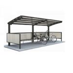 四国化成 サイクルポート V-R クローズタイプ 照明付き仕様 連棟用基本セット(2連棟セット) 積雪20cm 延高 屋根材:ポリカ板 VCCLE-2061 ブラックつや消し/ポリカ板(片面クリアマット) |