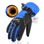 HIKENTURE手袋 キッズ【3M中綿・2倍保温力・防水】スキーグローブ 裏起毛 雪遊び・スノボ・通学・通園・自転車に最適 子供 ジュニア 男の子 女の子 ブルー・M(7~10歳) |