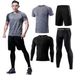 [Boyzn] スポーツウェア メンズ コンプレッションウェア 4点セット 吸汗速乾 トレーニングウェア 長袖 半袖 ランニングウェア メンズ ジャージ 上下セット 麻グレー Heather Grey-4P-L |