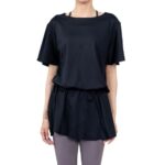 [iito.seasons] ヨガウェア 背中開き スカート トップス 丈長め ゆったり フィットネスウェア 体型カバー めくれない ロング丈 冷感シャツ 薄手 吸汗 速乾 UVカット 紫外線対策 おしゃれ 人気 (m, ブラック) |