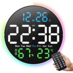 Wallfire LED デジタル時計 壁掛け 直径25.5cm 大文字表示 おしゃれ リモコン付き・明るさ調整可能 温湿度計・カレンダー・目覚まし・タイマー機能搭載 12/24時間切替 静音設計 ブラック リビング キッチン ベッドルーム オフィス ジム用 |