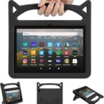 Fire HD 8/ HD 8 Plus タブレット ケース カバー 第10世代/第12世代 2022/2020/2024年発売 iPad 8 /samsung A8 RIAOUR 純正 保護カバー 軽量 EVA製 耐衝撃 スタンド付き 猫耳デザイン、子供人気 (黑) |