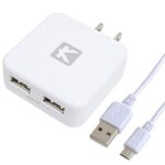 KYOHAYA USB2ポート 2台同時急速充電器 2.4A ACアダプター マイクロUSBケーブルキット iPhone Android IQOC対応 スマートIC搭載 可動式プラグ採用 ホワイト JKIQ80MWH |