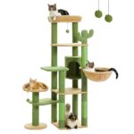 PETEPELA(ぺテぺラ) キャットタワー サボテン スリム 多頭飼い 大型猫用 据え置き おしゃれ 爪とぎポール 猫ハウス ハンモック 猫タワー 爪研ぎ サイザル麻 ポンポンおもちゃ 高さ150cm グリーン |