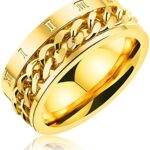 Rockyu ブランド メンズ リング ゴールド ステンレス ローマ数字 刻印 スピナー チェーン 喜平 幅広 ゴールド 金 指輪 18号 シンプルファッションアクセサリー |