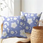 PAKAZA クッションカバー レトロポップな花 淡いブルーの優しさ 花柄 植物 森 自然派 ガーデナー 30×30cm 2枚セット エレガント ナチュラル モダン パステル 芸術家 クリスマス 誕生日 父の日 母の日 北欧 テラス 窓辺 庭 旅館 カフェ 車 インテリア オフィス ギフト 展示 ホテル 店舗用 家庭用 春夏にぴったり |