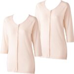 [ハナサンテラス] 介護下着 女性 前開き 2枚組 7分袖 プラスチックホック 介護用肌着 大人用 綿100% (ピーチ, S) |
