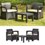 Donext ラタン調 ガーデンファニチャー 3点 ガーデンテーブル ラタン調 テーブル 家具 樹脂 ホテル カフェ ベランダ テラス 屋外家具 高級 ソファ【ベージュ】 |