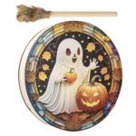 ハロウィンパーカッションドラム、シャーマンドラム – ゴーストパンプキンシャーマンハンドドラムドラムスティック付き – シャーマニックドラム楽器シャーマンゴーストパンプキンドラムシャーマンハンドドラムドラムスティック付きスピリチュアル音楽、反射、瞑想用 |