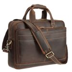 Polare フルグレインレザー 16.5インチ ラップトップバッグ ブリーフケース メンズ ビジネス メッセンジャー ワークバッグ 15.6インチのノートパソコンにフィット, ダークブラウン, レトロ。 |