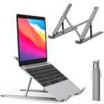 折りたたみ式ノートパソコンスタンド デスク用 – 高さ調節可能なノートパソコンスタンド コンピューターとタブレット用 – ポータブルで人間工学に基づいたノートパソコンライザー、サスペンションブラケット付き 自宅やオフィス用、ホワイト |