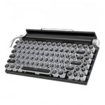Dudass タイプライター キーボード 丸型キーキャップ メカニカルゲーミングバックライトキーボード 83キー 青軸 BluetoothおよびUSBケーブル接続をサポート 携帯電話 タブレット ノートパソコンに対応 パンクスタイル オフィスにもゲームにも最適 (ブラック,デュアルモード接続) |