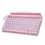 Dudass タイプライター キーボード 丸型キーキャップ メカニカルゲーミングバックライトキーボード 83キー 青軸 BluetoothおよびUSBケーブル接続をサポート 携帯電話 タブレット ノートパソコンに対応 パンクスタイル オフィスにもゲームにも最適 (ピンク,デュアルモード接続) |