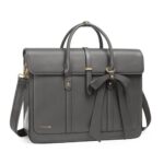 [MOSISO] 女性用 ラップトップケース、13-14インチ、PUレザーノートパソコンショルダーバッグ、バックパックに変換可能、13.3インチ、メッセンジャー カジュアルハンド 仕事ブリーフ ケース 旅行用 蝶結び付き(グレー) |