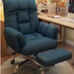 【完全サポートチェア】5段階リクライニング 昇降式 1人掛けソファチェア 360度回転 背もたれ・肘付き・足置き機能 長時間のデスクワークと仮眠に (青, ペダル付き) |