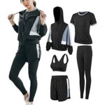 [DawnRain] スポーツウェア レディース ヨガウェア トレーニングウェア ランニング 上下 5点セット ジム フィットネス |