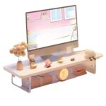 モニター台 卓上 100cm 高さ調整 モニタースタンド 木製 透明アクリル 安定性 机上台 省スペース パソコンスタンド ディスプレイ台 PCスタンド プリンタ台 机上台 キーボード収納 (ホワイト,60*20*8.5) |