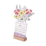 月間卓上カレンダー 2026年カレンダー 花が咲く小さなデスク 木製ベース付き クリエイティブな花瓶型デスクトップ 受付アクセサリー(1pcs) |