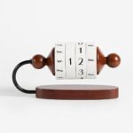 木製卓上カレンダー ロータリーカレンダー 赤白レトロ 日付・曜日・月齢 安定ベース オフィス・リビング用 あるインテリア(Brown) |