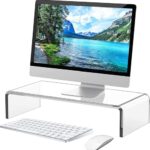 hengshao モニター台 卓上 アクリルパソコン台 透明モニタースタンド 白 高さ8cm 最適な人間工学デスクがスッキリするディスプレイ台 ノートパソコンスタンド 机上台 PC台 プリンタ台 キーボード マウス収納 省スペース 耐荷重25KG (42x20x8cm) |