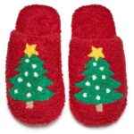 Funky Junque Cozy スリッパ 女性用 ソフト フラシ天 軽量 ポリエステル スマイリー フェイス クローズドトゥ ラグジュアリー ビューティー スリッポン ルームウェア ホーム キッチン 寝室用, クリスマスツリー(レッド), 37/38 EU |
