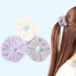 カラフル パープル ラグジュアリー ソフト フラシ天 シュシュ 3個 女性用 – ベルベット ヘアタイ & 優しいヘアアクセサリー 丈夫で快適 シュシュセット 彼女/お母さん/姉妹へのギフトに |