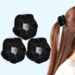ブラック 3ピース ラグジュアリー ソフト プラッシュ シュシュ 女性用 – ベルベット ヘアタイ & 優しいヘアアクセサリー 丈夫で快適 シュシュセット 彼女/お母さん/姉妹へのギフトに |